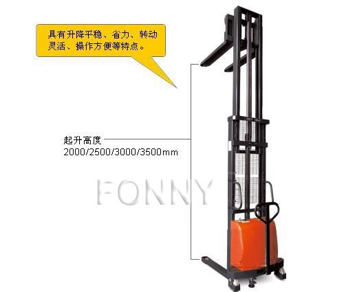 • 具有裝卸和短距離運輸貨物功能的兩用半電動堆高車;