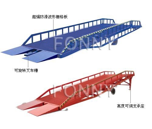 移動式液壓登車橋是與叉車配合使用的貨物裝卸輔助設備,可根據汽車車廂的高低調節高度,叉車可以直接通過本設備駛入車廂內部進行貨物的批量裝卸,僅需單人作業,即可實現貨物的快速裝卸。它使企業減少大量勞動力,提高工作效率,獲取經濟效益。