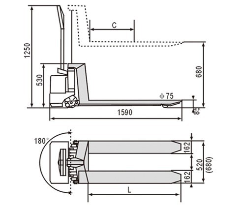 • 當貨叉降至420 毫米高度時,前輪支撐腿和可調(diào)穩(wěn)定器會自動延伸貼緊地面確保穩(wěn)定性和制動性能