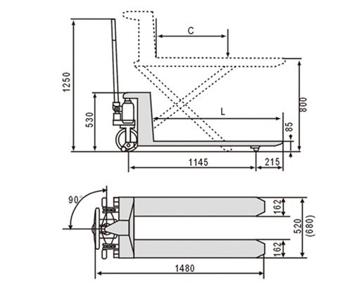 • 特征:起泵非常簡便加上體重輕盈,使該搬運車既適合當作手動托盤搬運車又可當作升降平臺