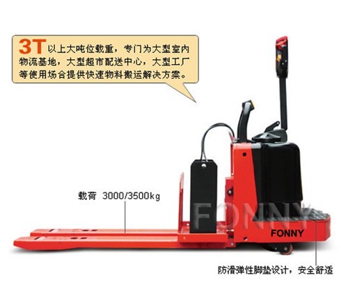 隨著大型物流集散中心的不斷發展,以及對搬運效率的要求不斷提高,單次托盤承載要求往往突破傳統電動搬運車2噸的承載能力,并且要求超常規的高速行走以解決超大空間內的高效搬運。大噸位電動搬運車,專門為大型室內物流基地,大型超市配送中心,大型工廠等使用場合提供快速物料搬運解決方案。