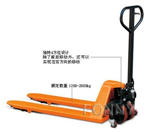 • 配有一組附加輪使搬運車除了傳統的前后方向移動外還可側面移動