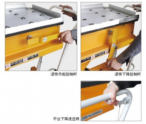 • 鋼珠被提升時,臺面上的貨物更易于搬運;鋼珠被下降時,貨物穩(wěn)固地位于臺面上;
