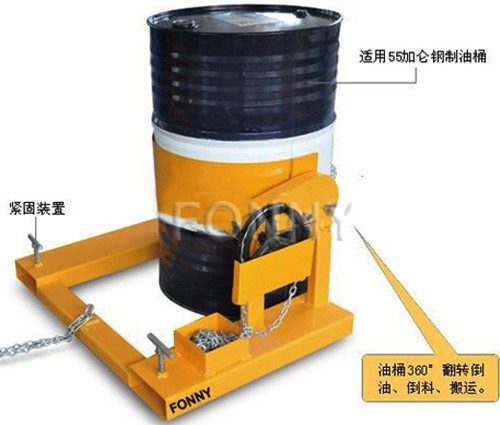 叉車專用、可提升,油桶360°翻轉倒油、倒料、搬運。